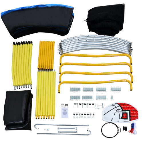 12FT Trampoline for Kids with Safety Enclosure Net Basketball Hoop