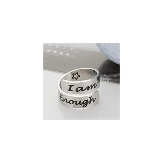 Inspirational Motivational Ring Adjustable Personalized Stainless Steel Spiral Wrap Twist Ring Encouragement Personalized Jewelry Birthday Gifts for Girls I am Enough