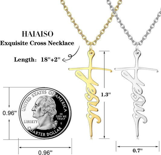 2PCS Faith Cross Necklace Blessed Hope Strength Pendant Necklace Silver Gold Stainless Cross Necklace Christian Religious Inspirational Gift for Women Girls