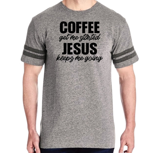 Mens Vintage Sport Graphic T-shirt Coffee Get Me Started, Jesus Keeps