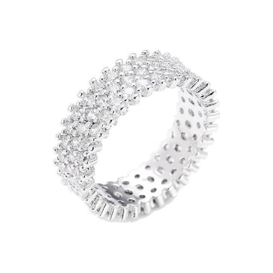 Rhodium Plated Wide 3 Row Eternity Ring Band for Women with CZ Stones by Matashi Size 7