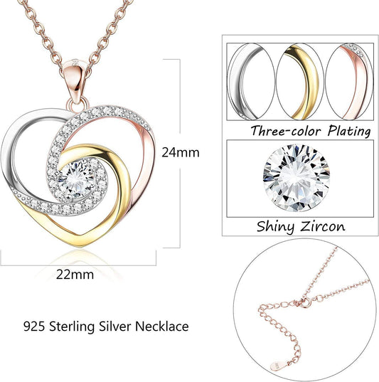 925 Sterling Heart Pendant Necklace for Women Girls Women's Necklace CZ Three-Color Plating Heart Necklace Valentine for Women