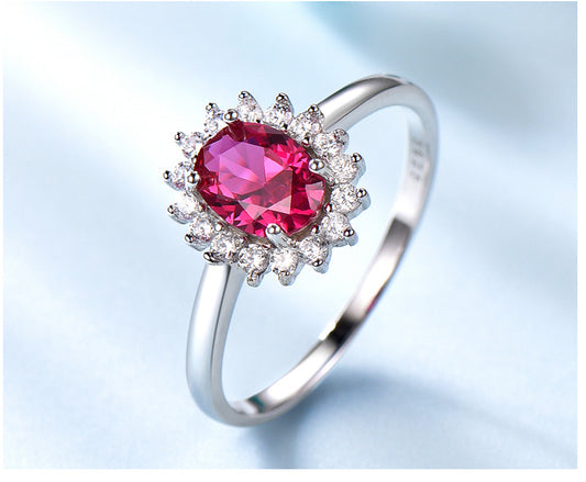 925 Sterling Silver Jewelry Ruby Ring with White Round CZ Stone Silver Ring