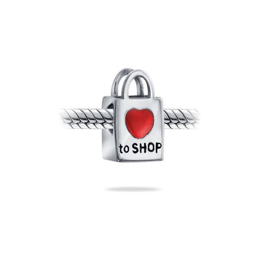 Shopping Bag Heart Love Charm Bead Women Teen Oxidized .925 Sterling Silver Fits European Bracelet