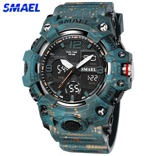 SMAEL Watches Men Sports Watch Top Brand Luxury Military Alarm Dual Display Digital Quartz Waterproof Wristwatch For Male Clock