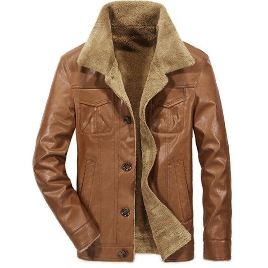Autumn Winter New Men's Chamois Suede Fleece Thick Jacket Vintage Outdoor Casual Plush Warm Coat Lapel Fashion Trend Retro Brown