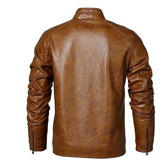 Men's Stand Collar Leather Jacket Faux Leather Outwear