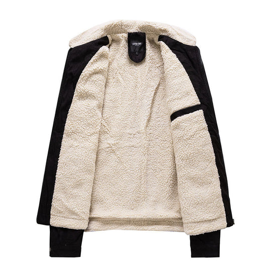 Winter New Men's Corduroy Plush Thick Jacket Vintage Outdoor Casual Fleece Warm Coat Lapel Fashion Trend Retro Brown Beige Black