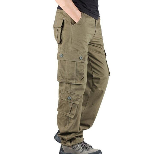 Men's Casual Pants Loose Straight Multi Pocket Outdoor Work Cotton Trousers