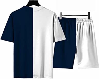 Men's Round Collar Suit 2 Piece Short Sports Set Short Shirt+ Pants Tracksuit Gym Suits