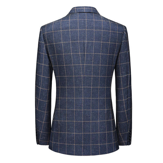Men's Business Casual Mature Style One-button Plaid Striped Back Double-split Blazer