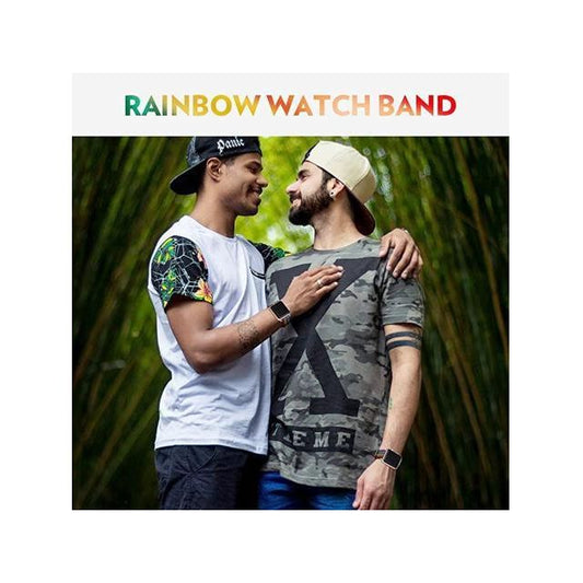 Rainbow Watch Band Compatible for Apple WatchLGBT Woven Nylon Wristband Replacement Sport Strap Compatible for iWatch Series SE 654321 42MM44MM All ModelsBlack Bottom with Steel Buckle