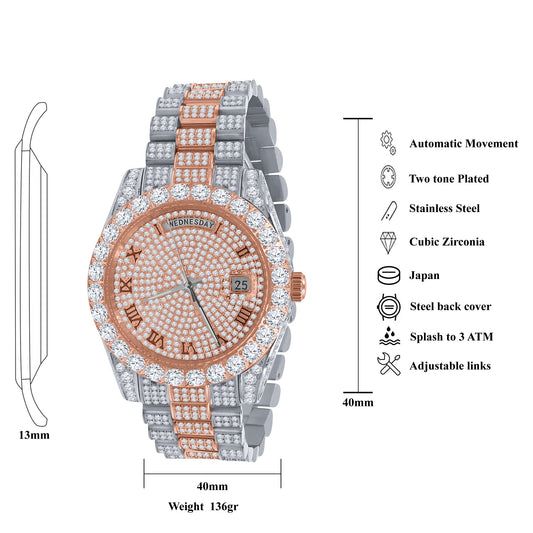 Full Diamond Roman Scale Steel Band Calendar Watch