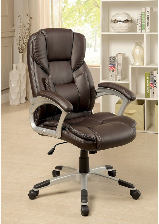 Comfortable Modern Contemporary Office Chair Upholstered 1pc Comfort Adjustable Chair Relax Office Chair Work Brown Leatherette Padded Armrests