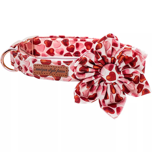 Unique Style Paws Valentine Red Heart Dog Collar with Flower Adjustable Pet Dog Collar for Large Medium Small Dog