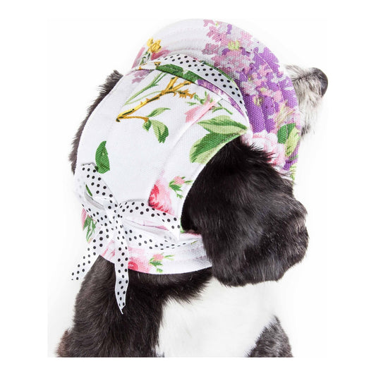 Pet Life 'botanic Bark' Floral Uv Protectant Adjustable Fashion Canopy Brimmed Dog Hat Cap - Large