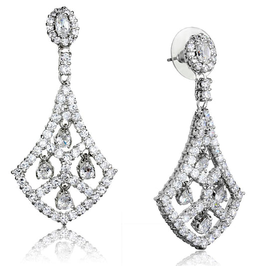 3W931 - Rhodium Brass Jewelry Sets with AAA Grade CZ in Clear